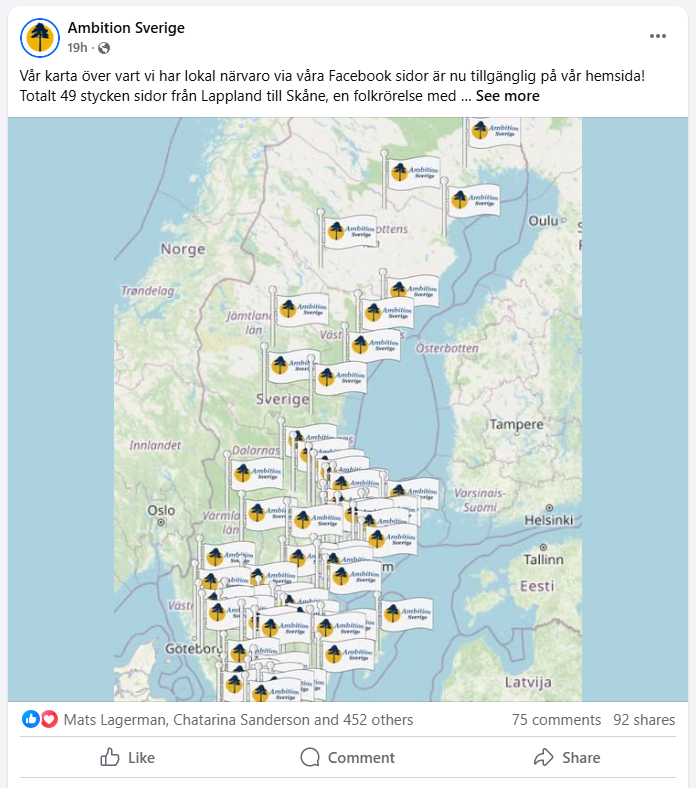 Utifrån vad jag har sett av Ambition Sverige är det uppenbart för mig att partiet brister i organisation, strategi och ledarskap.Ambition Sverige (A) är Elsa Widdings parti. Partiet ägnar sig mest åt interna diskussioner och når inte ut. De som styr partiet vet ingenting om politisk organisation. Det är som att be en syförening att organisera textilarbetarnas fackliga rörelse. De må vara hur skickliga som helst på korsstygn och broderier men någon riksorganisation som organiserar Sverige blir det aldrig. Ja, jag kan hålla med om att broderierna är vackra, men förstår man ingenting om politisk organisation så lyfter partiet aldrig. Jag vet att denna tanke är ny för många som läser detta, men framgångsrika partier har starka organisationer. Jag kommer att återkomma i ämnet.