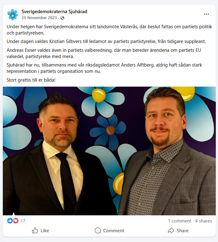 Den tidigare partiledaren för SD, Mikael Jansson, satt i riksdagen för SD sedan 2010. År 2013, kanske 2014, upptäckte han att SD började bli otydligt i fråga om EU. Jag hade upptäckt samma sak och skrev om det. Mängder av Sverigedemokrater hoppade på mig och skrev att det inte var sant. SD ändrade officiellt hållning i oktober 2018 efter valet. Mikael Jansson som ville hålla fast vid sitt EU-motstånd petades.