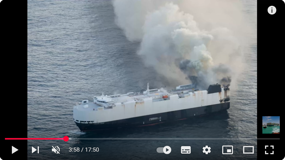 Elbilar orsakar förödande bränder när de transporteras på fartyg. Det går inte att släcka bränder i elbilar. Vid fel kan de självantända, men det uppstår ingen brand i vanlig mening, utan en kemisk reaktion som inte går att släcka.