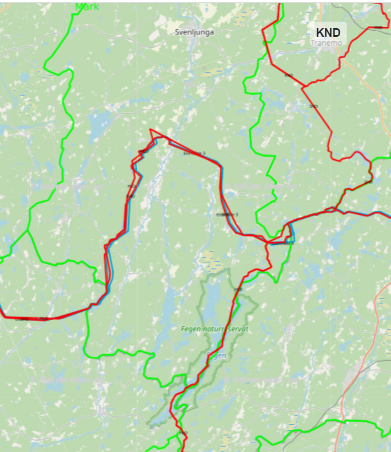 Karta visande gränsen mellan elområde 3 och 4 i Svenljunga kommun