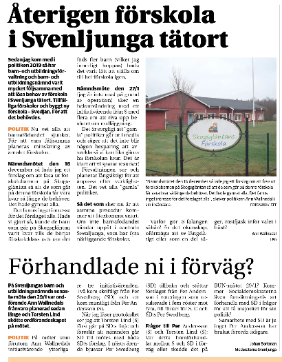 - Svenljunga & Tranemo Tidning: Socialdemokraterna vänder - vill nu stoppa planerad avveckling av förskola – 2026-01-28