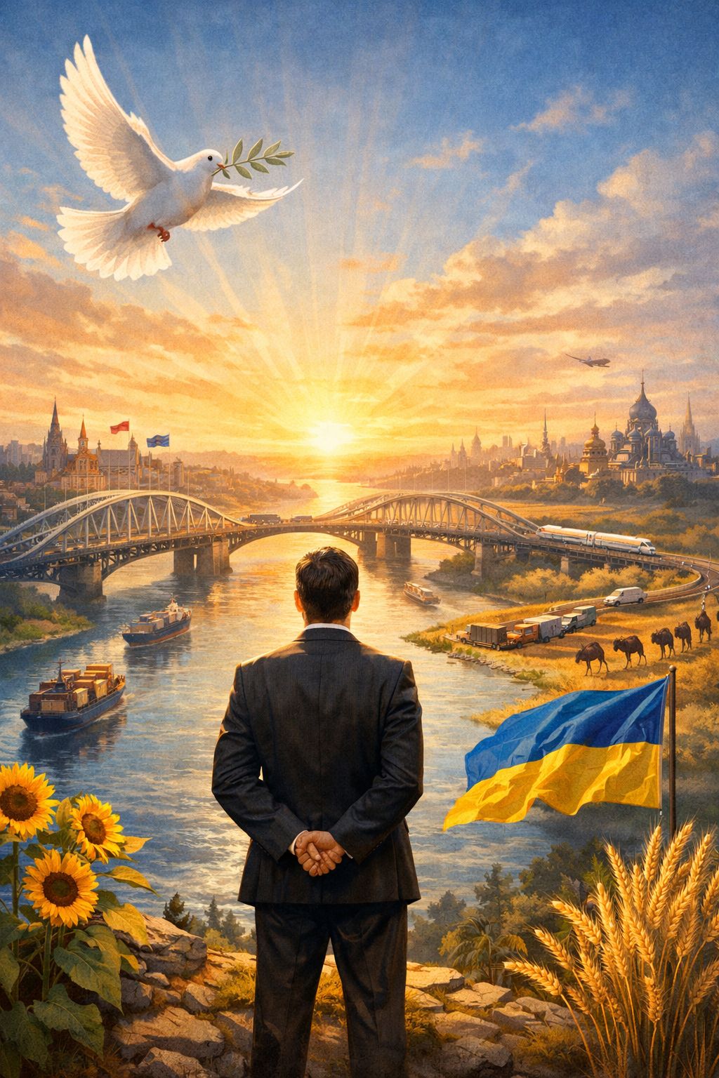 Ukraina ska bli ett dörrnätverk mellan Europa och Asien, ett levande nav där handel, idéer och kulturer möts som floder i ett gemensamt delta. Ett land som knyter samman marknader i öst och väst – från den Ryska federationen till Ungern, Polen och de baltiska staterna – inte som slagfält, utan som mötesplats.